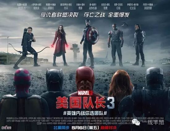 由美国漫威影业公司出品的科幻动作片《美国队长3》,讲述了奥创事件后引发的一系列政治问题导致复仇者之间内部矛盾激化的故事。影片于2016年5月6日以3D、IMAX 3D在美国、中国大陆同步上映。