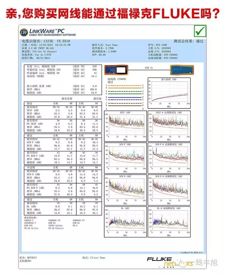 福禄克(Fluke)公司是世界电子测试工具生产、分销和服务的领导者,只有大品牌、质量过硬的网络线能通过福禄克测试仪的测试。