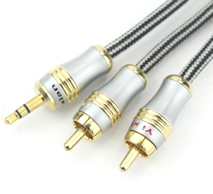 | 名称:3.5mm/公-2RCA/公 数码音频线 系列:节节高 型号:YX-8323 颜色:米黄+黑白棉网 长度:1.8米 包装:铁盒 尺寸:直径110*高35mm 插头:珍珠铬+镀金=4件套装 插头专利号:ZL 2012 3 0135734.2 设计理念:以竹节为依据,衍生插头形状 环保:符合ROHS标准 产地:广东深圳 结构:OD4.0MM[(9/0.10mmOFC)*2C+棉纱+AL+SP(20/0.10mmOFC)]*1F |