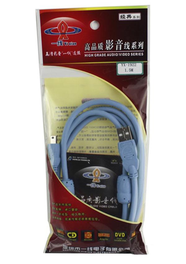 | 名称:USB/A公-Mini5pin公 2.0高速数据线 系列:天之蓝 型号:YX-1922 颜色:浅蓝色 长度:1.5米 包装:精美袋装 尺寸:长100mm*高230mm 环保:符合ROHS标准 产地:广东深圳 专利号:否 结构:标准28+28AWG线规,100%覆盖铝箔,80%以上覆盖编织层,哑面优质PVC |